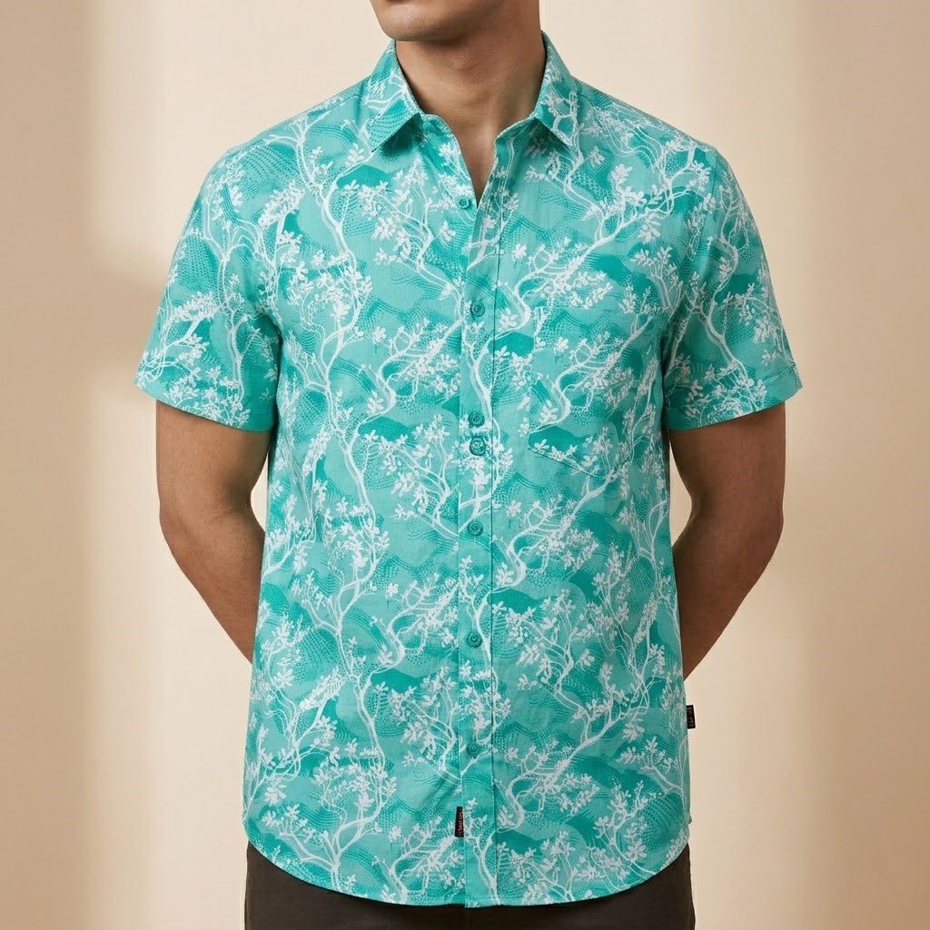 Pure Cotton Half Sleeve Print Shirt for Men's